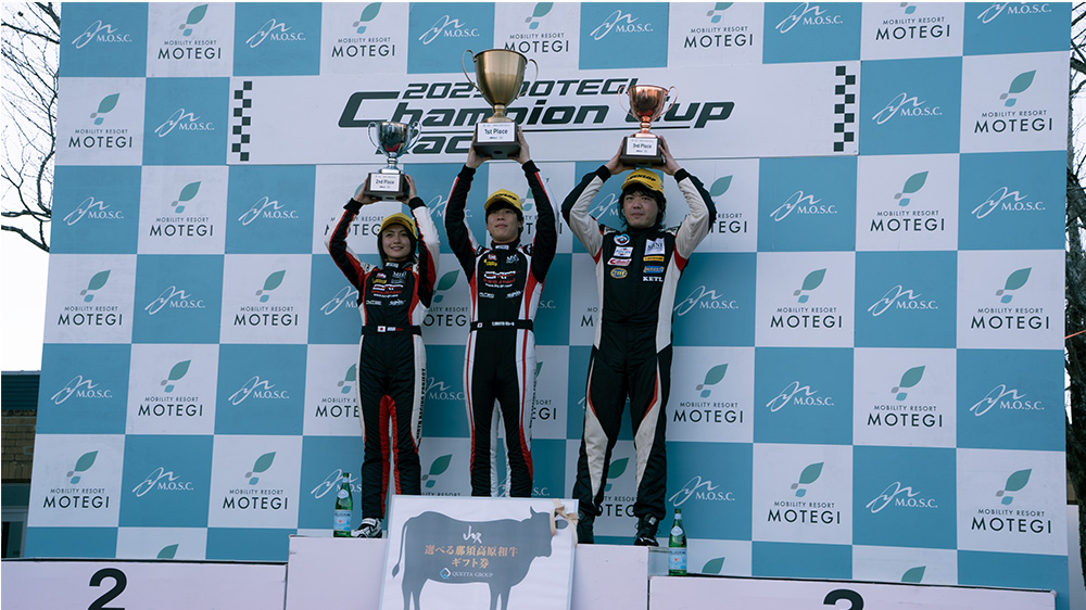 M2 CS Racing阿部はRace1では惜しくも表彰台を逃しましたが、Race2では強敵の石井選手をなんと抑え3位で入賞し、NEW MINI JCW天田も3位と